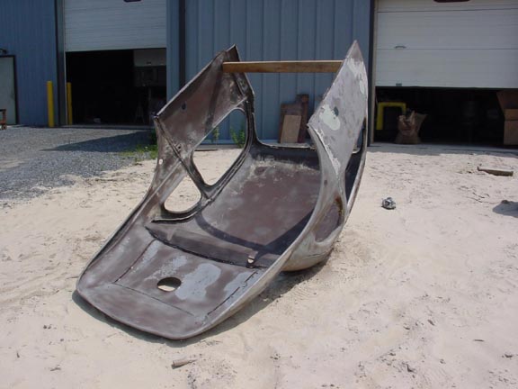 roof of the 1955 Chevy. The hood also came from the Chevy.