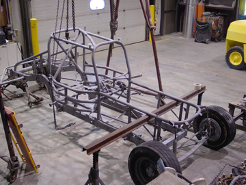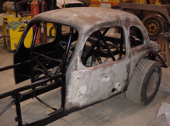 Mike has recently completed restoring Bobby Braxton's blue 35 car. Mike worked with Mr. Bobby Braxton to complete the car utilizing all original pieces and techniques. The pictures below show the steps of the process.